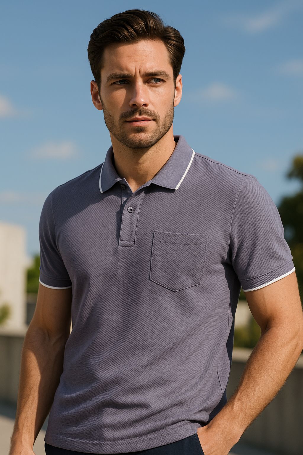 Effortless style meets refined detail in the Twilight Slate Polo. Designed in a rich, muted slate purple hue, this polo features crisp white tipping on the collar and sleeves, adding a touch of classic contrast to a modern silhouette.