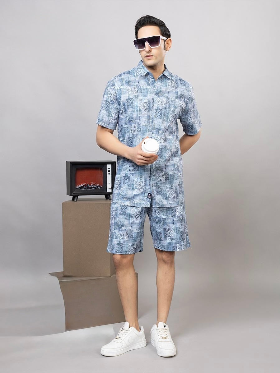 Make a bold style statement with this Green Tribal Print Co-ord Set, designed for a modern and adventurous look. Featuring a short-sleeve collared button-down shirt paired with matching relaxed-fit shorts, this set is all about effortless style and comfort.